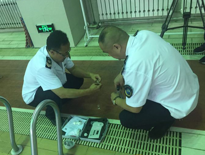在监督检查过程中,监督人员重点检查了游泳场所的卫生制度落实情况并对39家游泳场所的游泳池水、浸脚消毒池水进行现场抽样,共抽取游泳池水水质样品78份,现场检测游泳池池水游离性余氯60余份、浸脚消毒池池水游离性余氯50余份。目前,所有样品已送临沂市疾病预防控制中心进行细菌总数、大肠菌群、尿素、浑浊度、PH值等相关项目的检验。